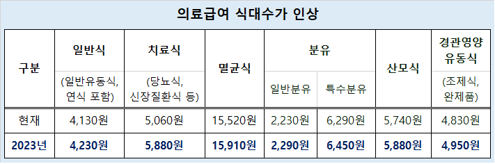 3일부터 의료급여 환자에 대한 일반식, 치료식 식대가 건강보험 의원급 수준으로 인상된다.