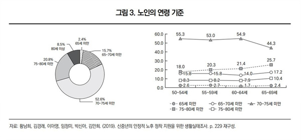 일반적으로 노인의 기준을 '65세'로 보는 경우가 많지만, 신중년층이 바라보는 기준은 이보다 높은 셈이다. 우리나라에서는 기초연금, 국민연금, 장기요양보험, 지하철 경로 우대 등 주요 복지 제도가 65세를 기준으로 운용되고 있다.