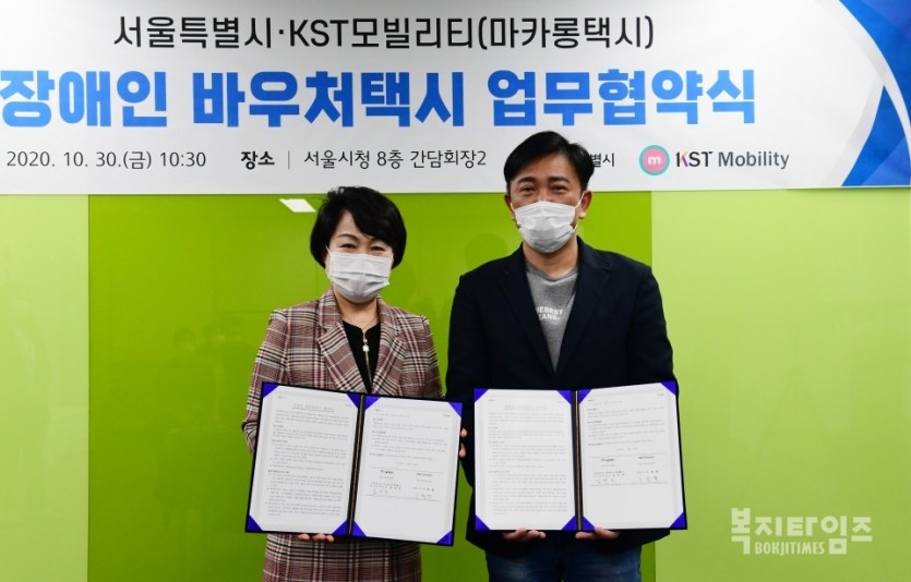 서울시는 지난 10월 30일 KST모빌리티(마카롱택시)와 장애인 이동편의 증진을 위해 바우처택시 업무협약을 체결한 바 있다.